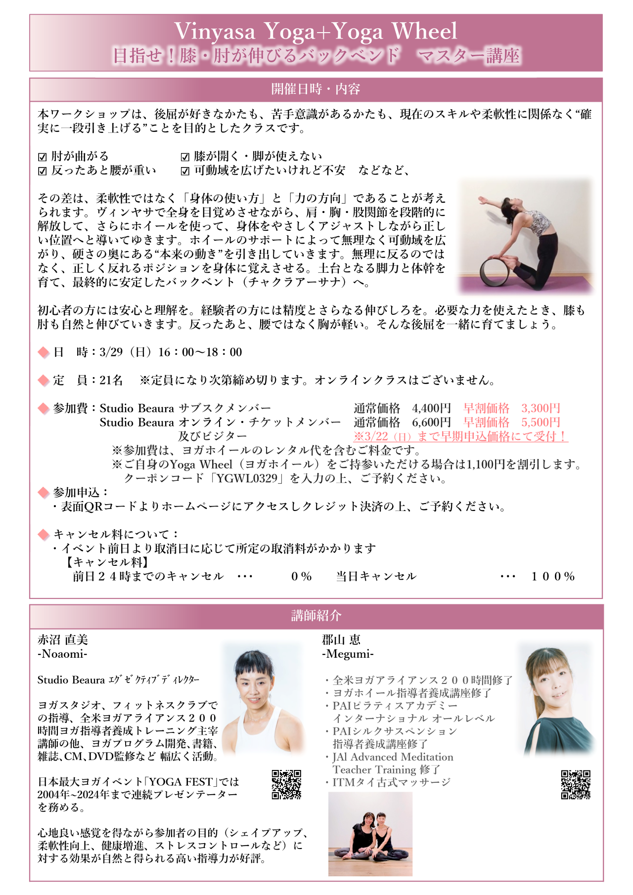 目指せ!膝・肘が伸びるバックベンド マスター講座ヴィンヤサヨガ+ヨガホイール イベントレッスン開催情報(3/29)